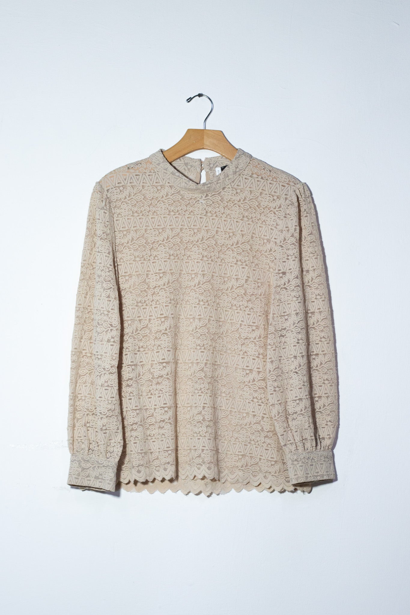 Blusa manga larga con encaje bei