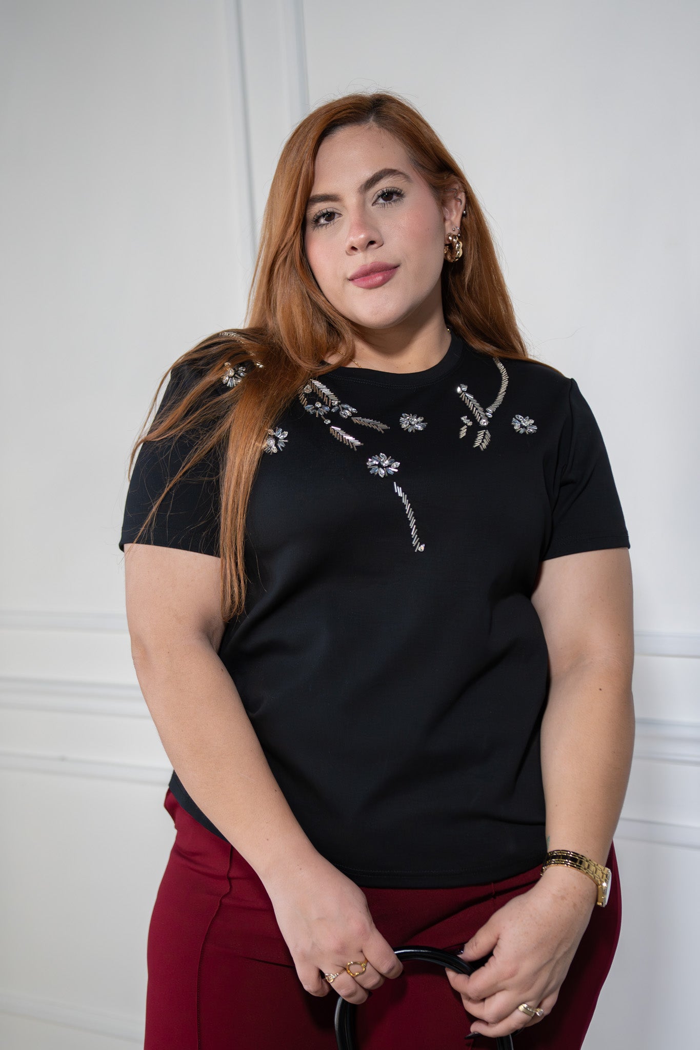 Blusa con piedras negra