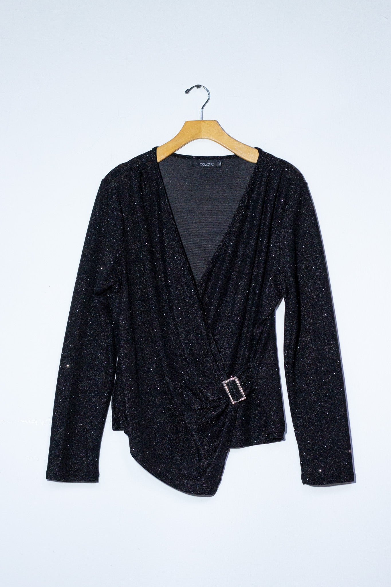 Blusa manga larga brillos negra