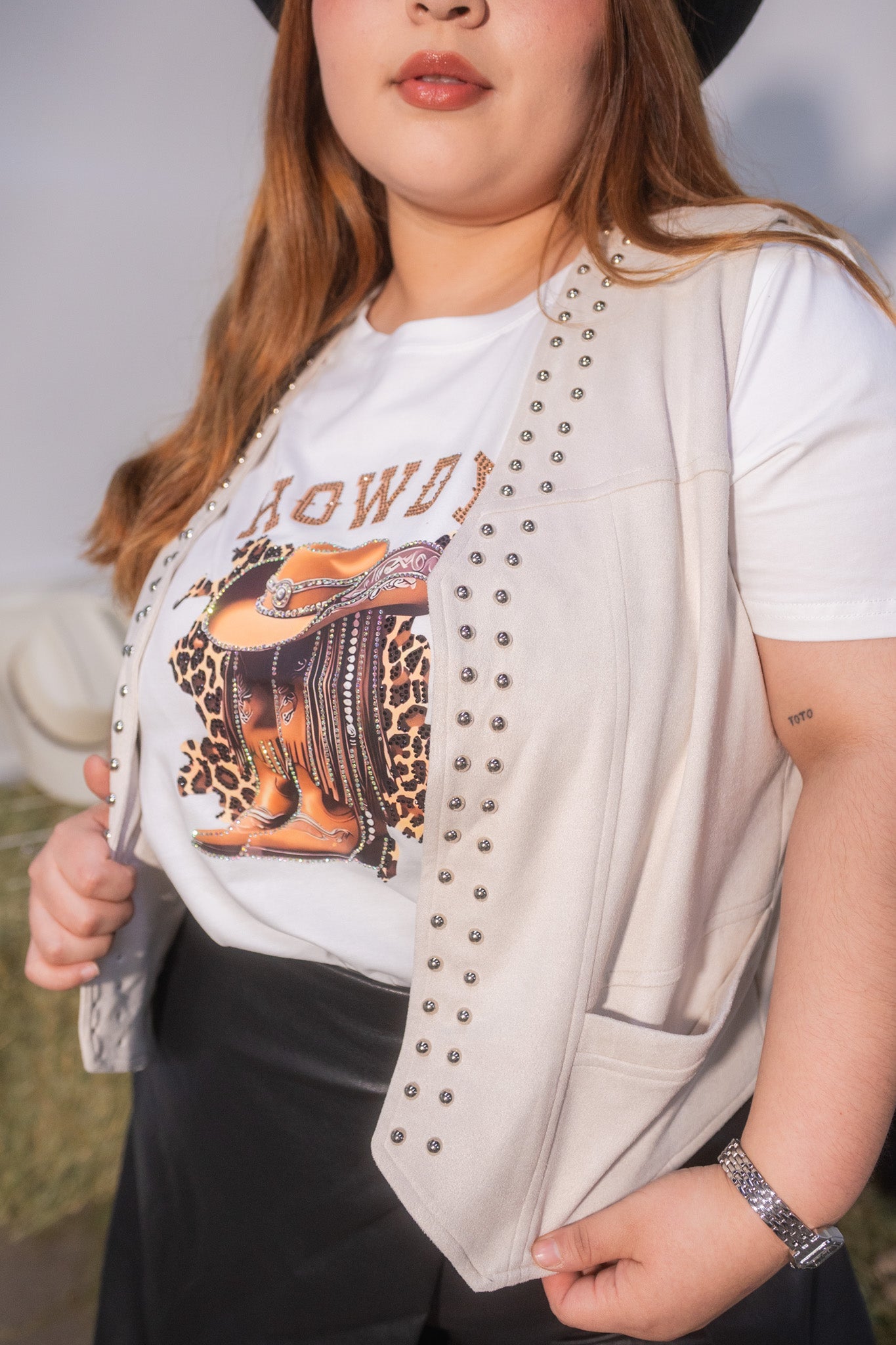 Chaleco gamusa con estoperoles bei
