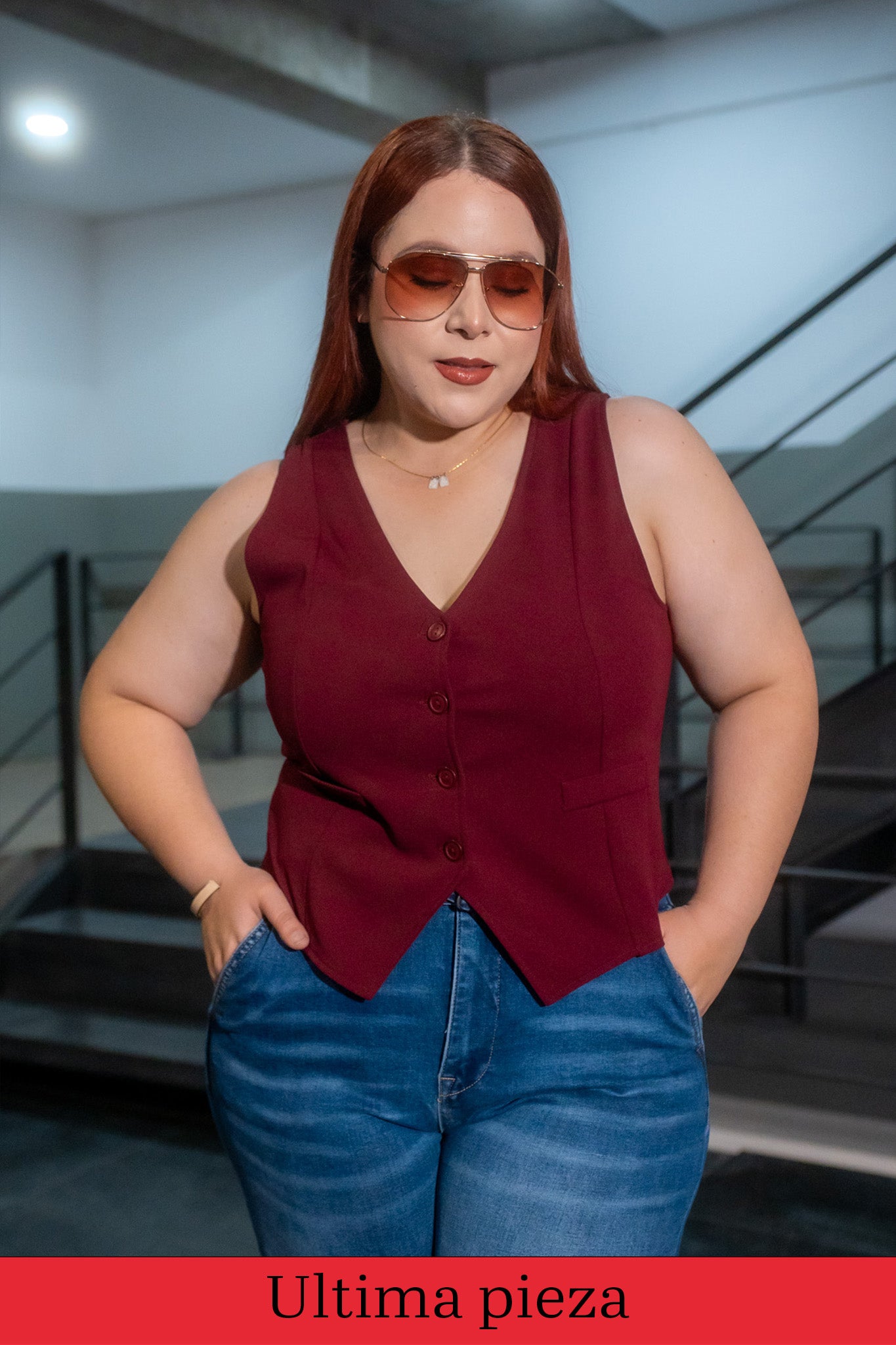 Chaleco de vestir liso tinto