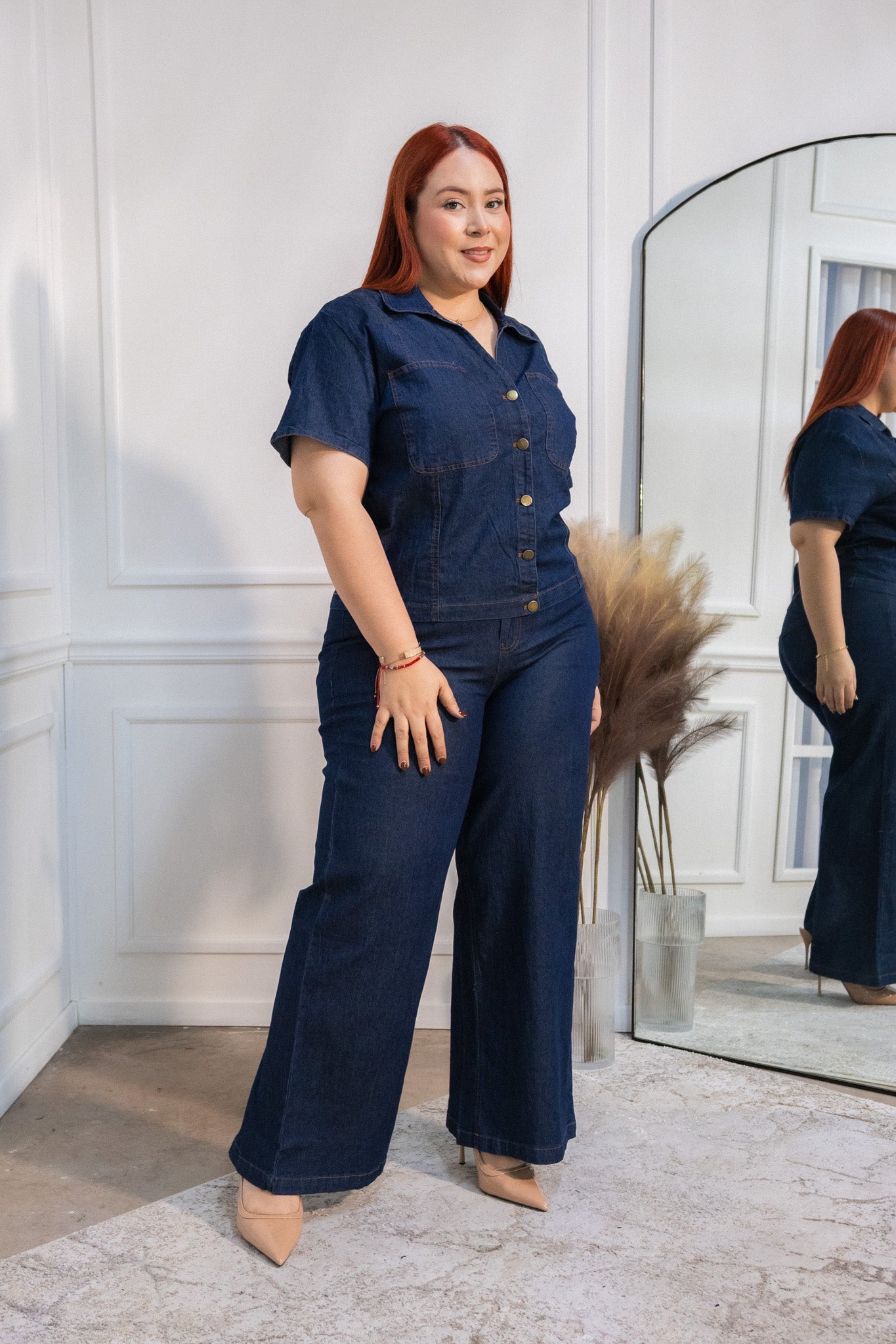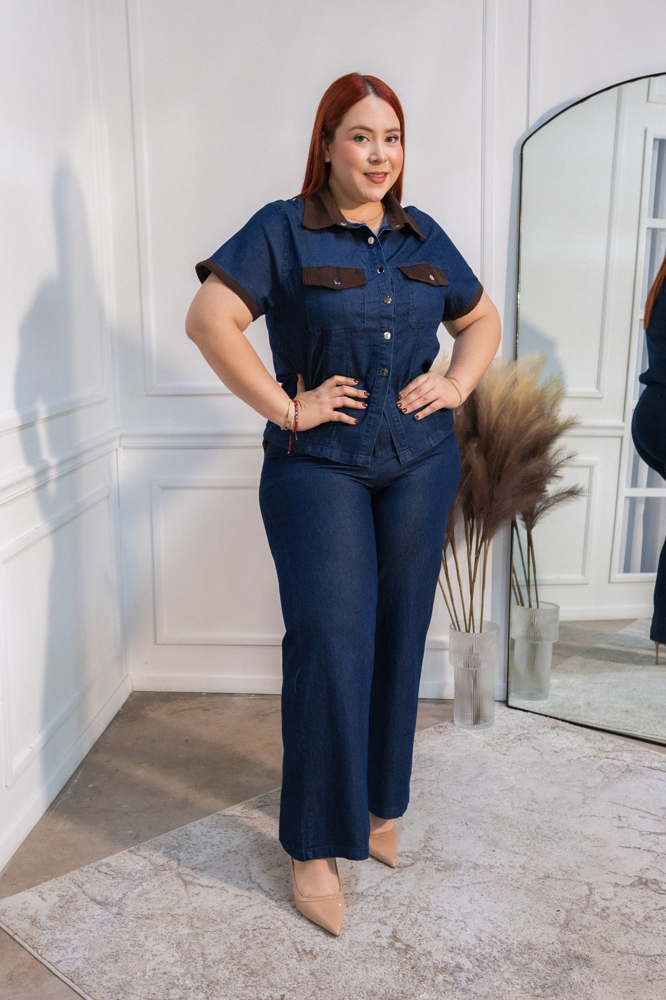 Conjunto camisa denim estampada