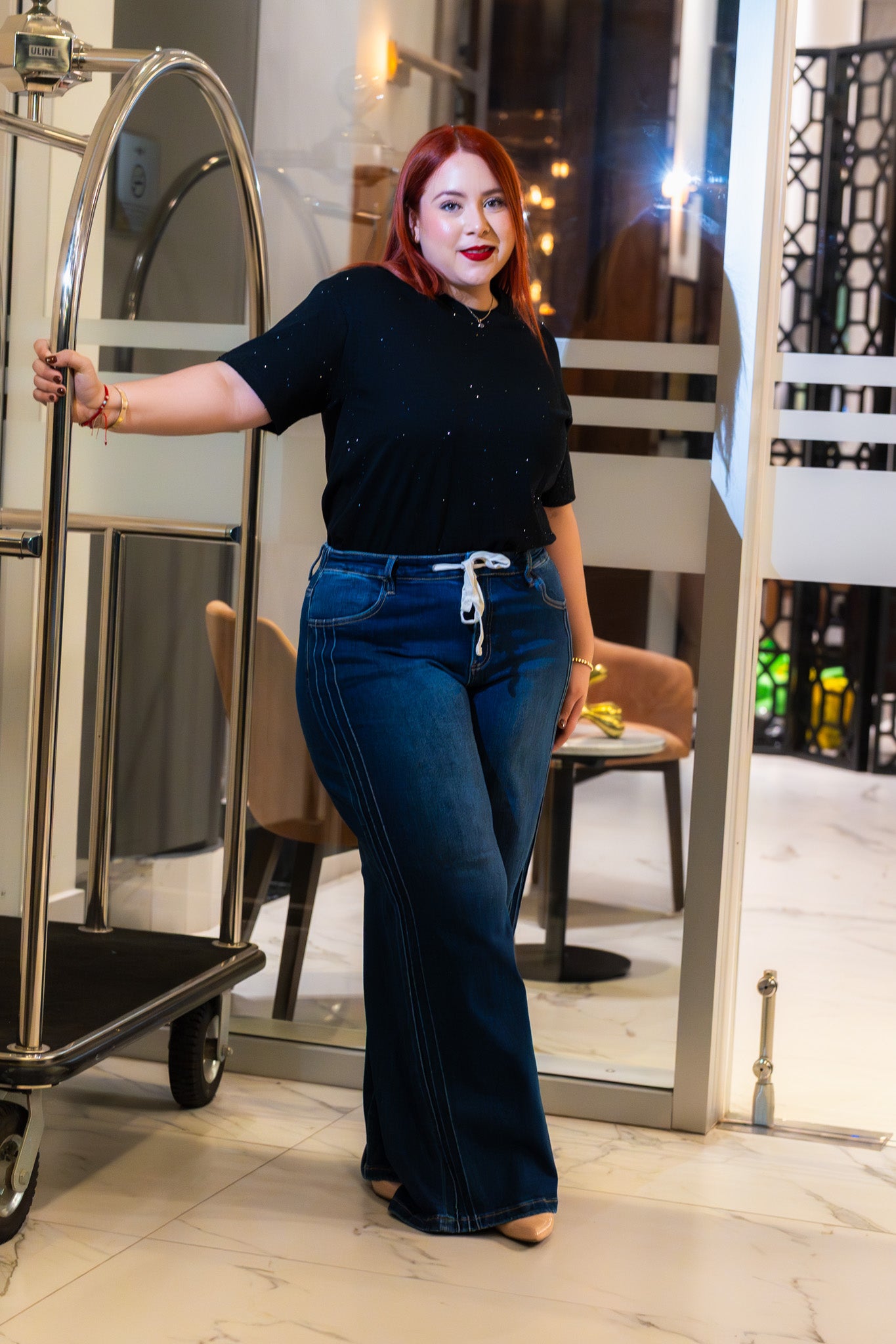 Jeans palazzo con destellos bei