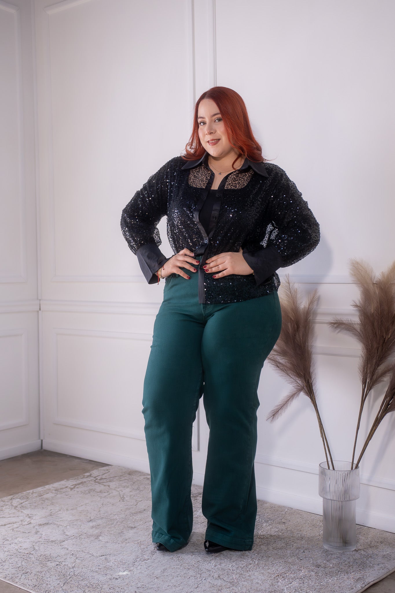jeans recto liso verde