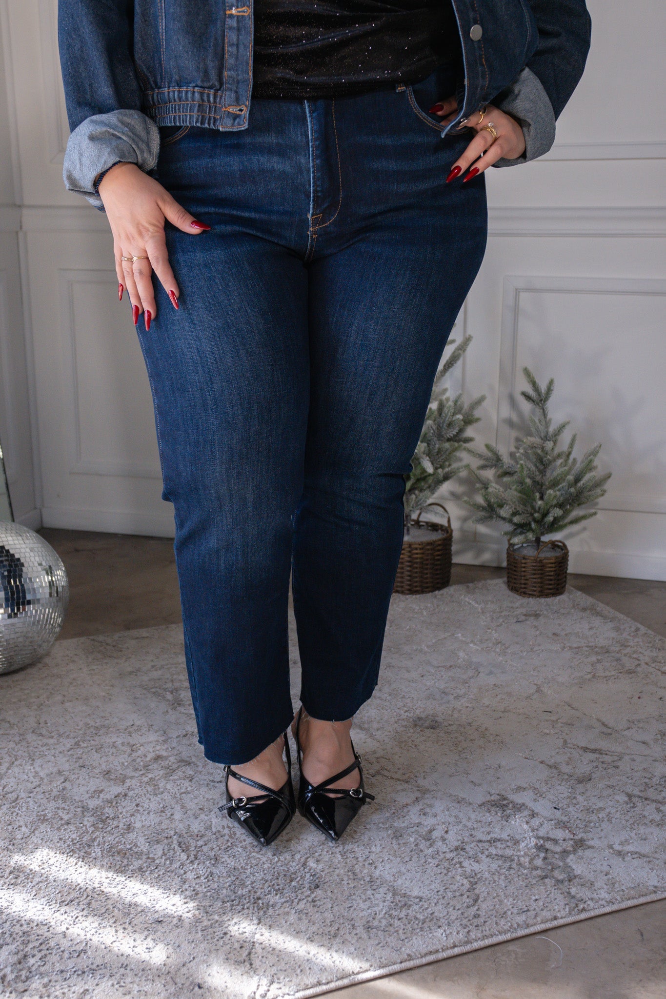 Jeans recto crop liso osc