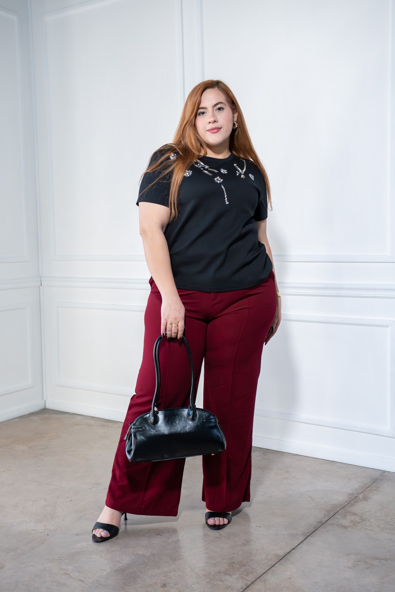 Pantalon palazo vestir tinto