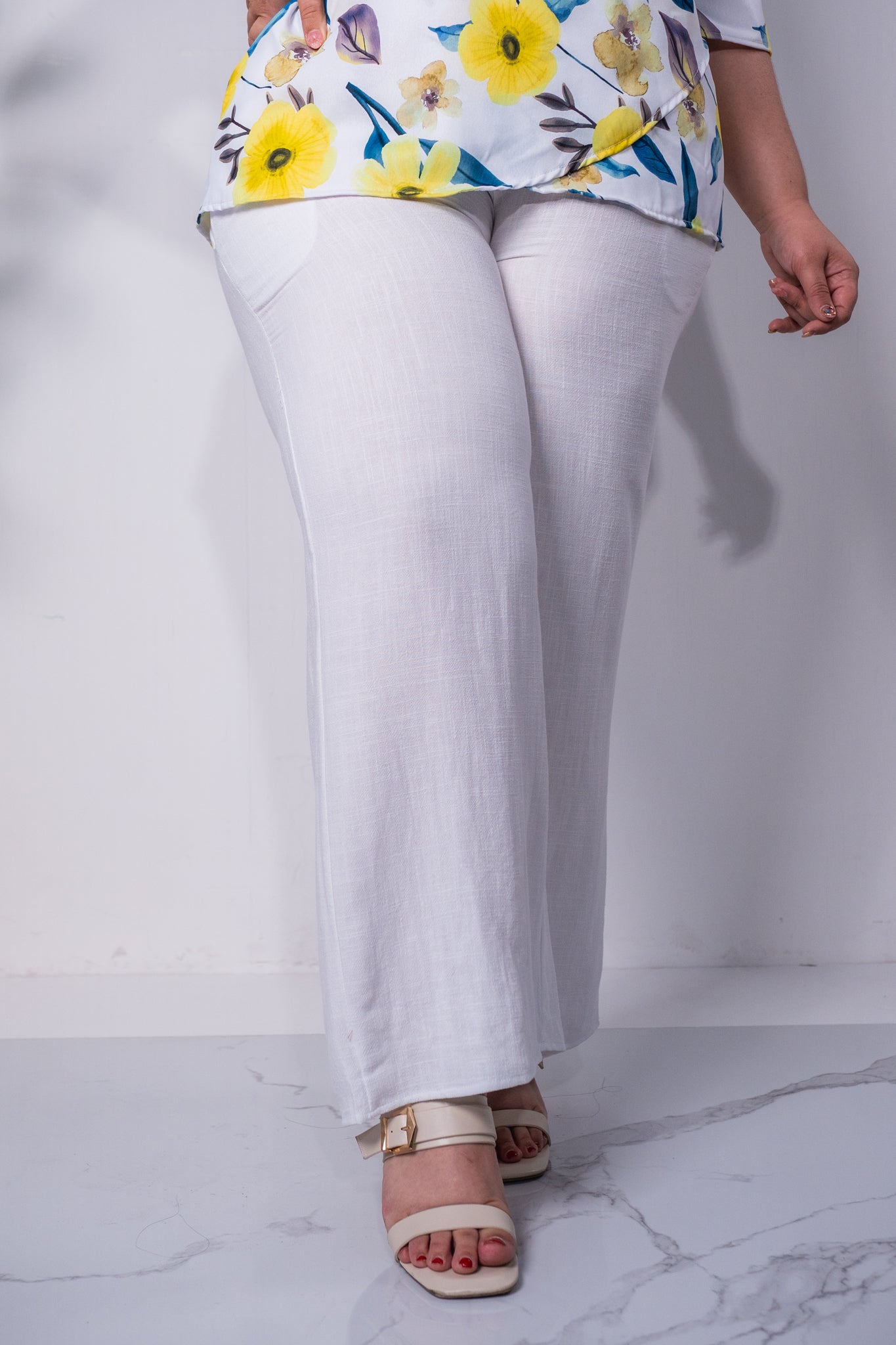 Pantalon lino liso blanco
