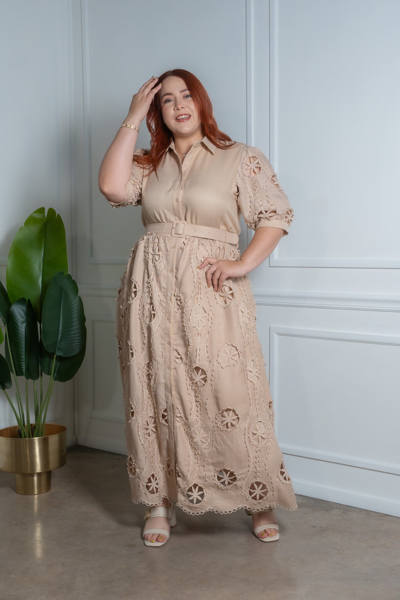Maxi vestido camisero liso beige